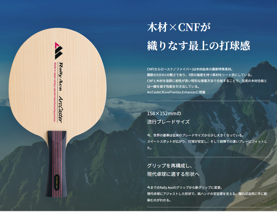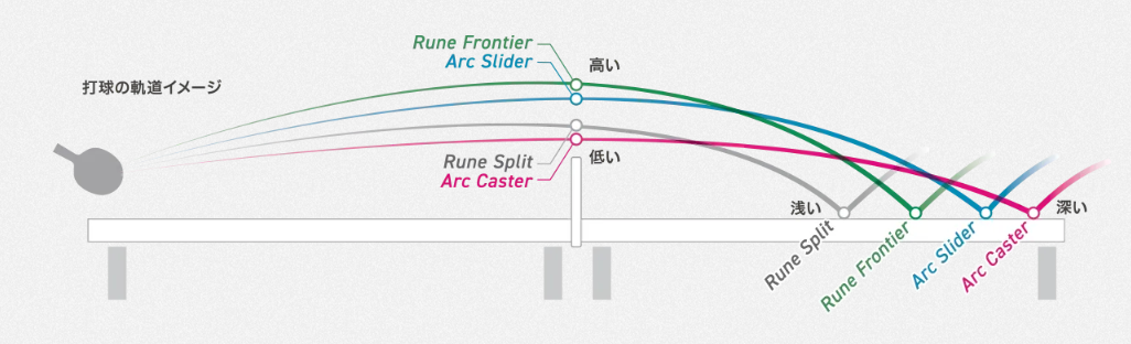 そして今回Rally Ace (ラリーエース)さんのラケットシリーズが刷新されました!上板に使う木材によって次のように名前が変わりましたね! 上板Maple (メイプル、楓): Arc Caster Series (アークキャスター)シリーズ 上板Limba (リンバ): Arc Slider Series (アークキャスター)シリーズ 上板Zebra (ゼブラ): Rune Split Series (ルーンスプリット)シリーズ 上板Ash (アッシュ): Rune Frontier Series (ルーンフロンティア)シリーズ