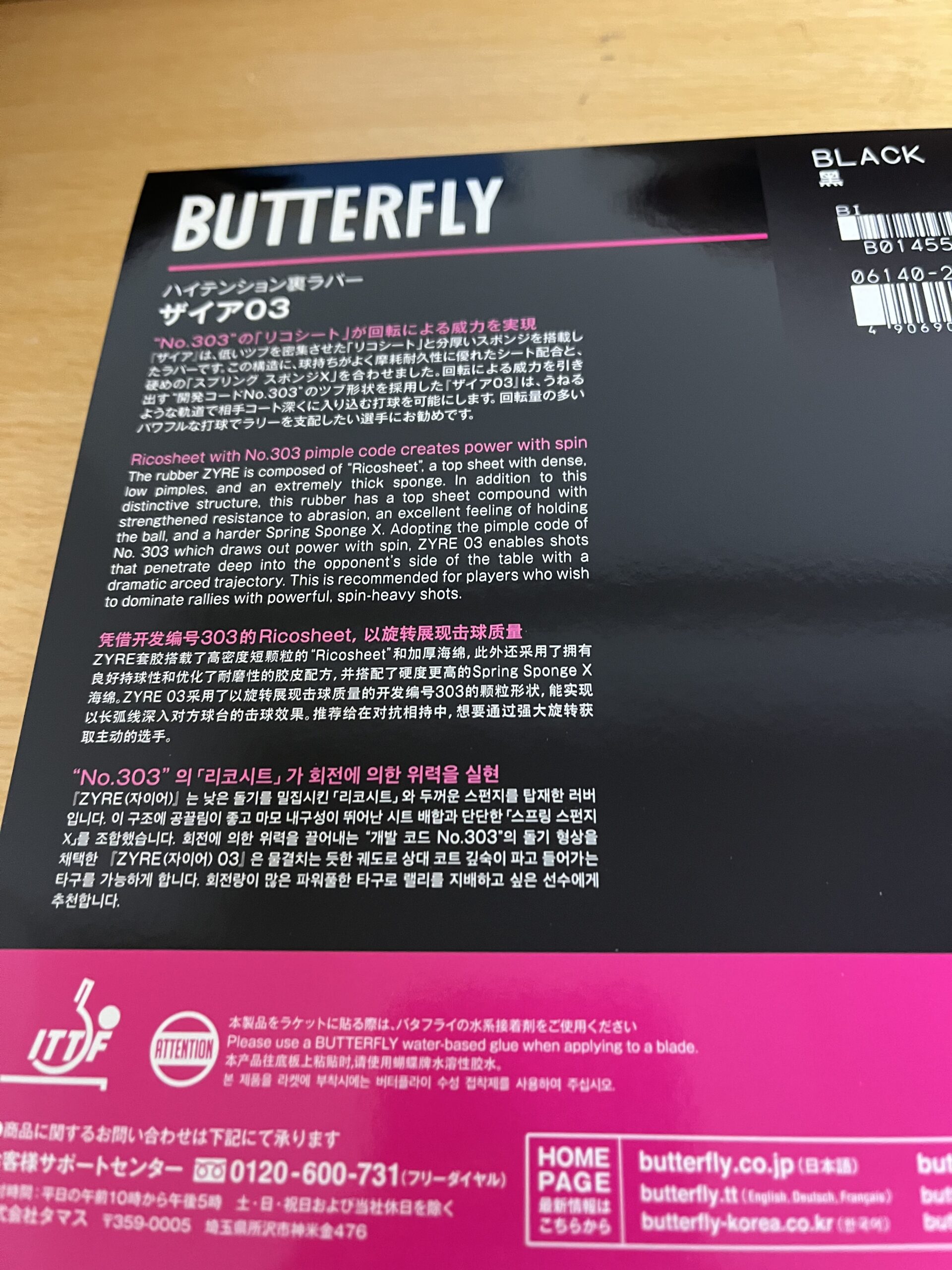 届いたHarimoto Tomokazu Innerforce Super ALC (張本智和インナーフォースSALC)は87 gでした。個人的には90 gオーバーくらいの重いものを期待していたのですが、やや軽かったですね汗。ラバーは現在メインで使用しているものを新しく貼りました。フォア面にJekyll &Hyde C55 (ジキル&ハイドC55)を、バック面にDignic 05 (ディグニクス05)を貼りました。グルーはフォア面はButterfly (バタフライ製)のFree Chack II (フリーチャック2)、バック面はThe World Connect製のTWC Glue Feng (TWCグルーフェン)を使いました。