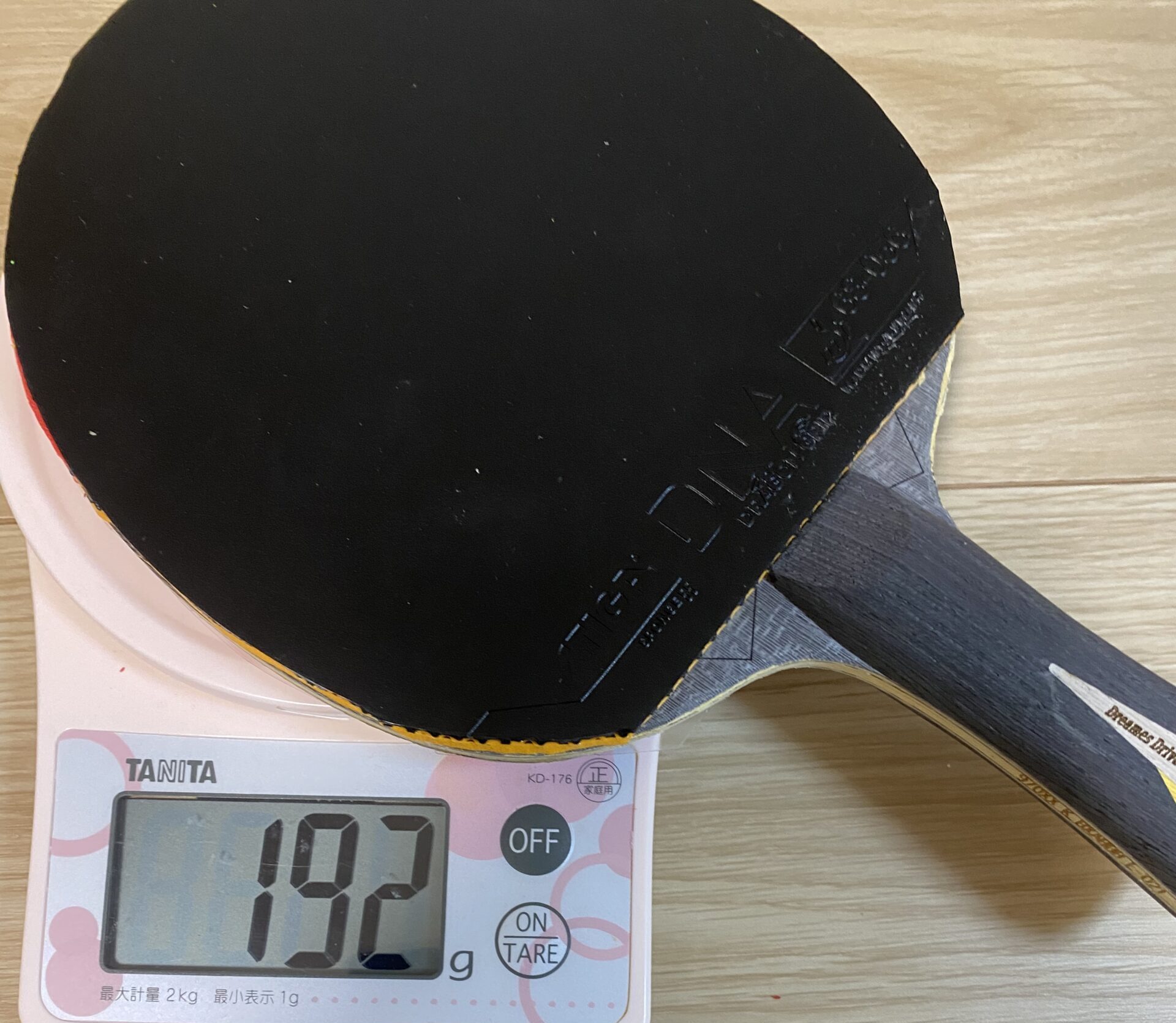 Light hit After using it in the fore, I tried using it in the back, but as I imagined, I felt it was easy to use in the back. With a sponge hardness of 55 °, the weight is certainly as heavy as 50 g, but I felt that it was easier to handle than Chinese adhesive and could be used in the back without any discomfort.