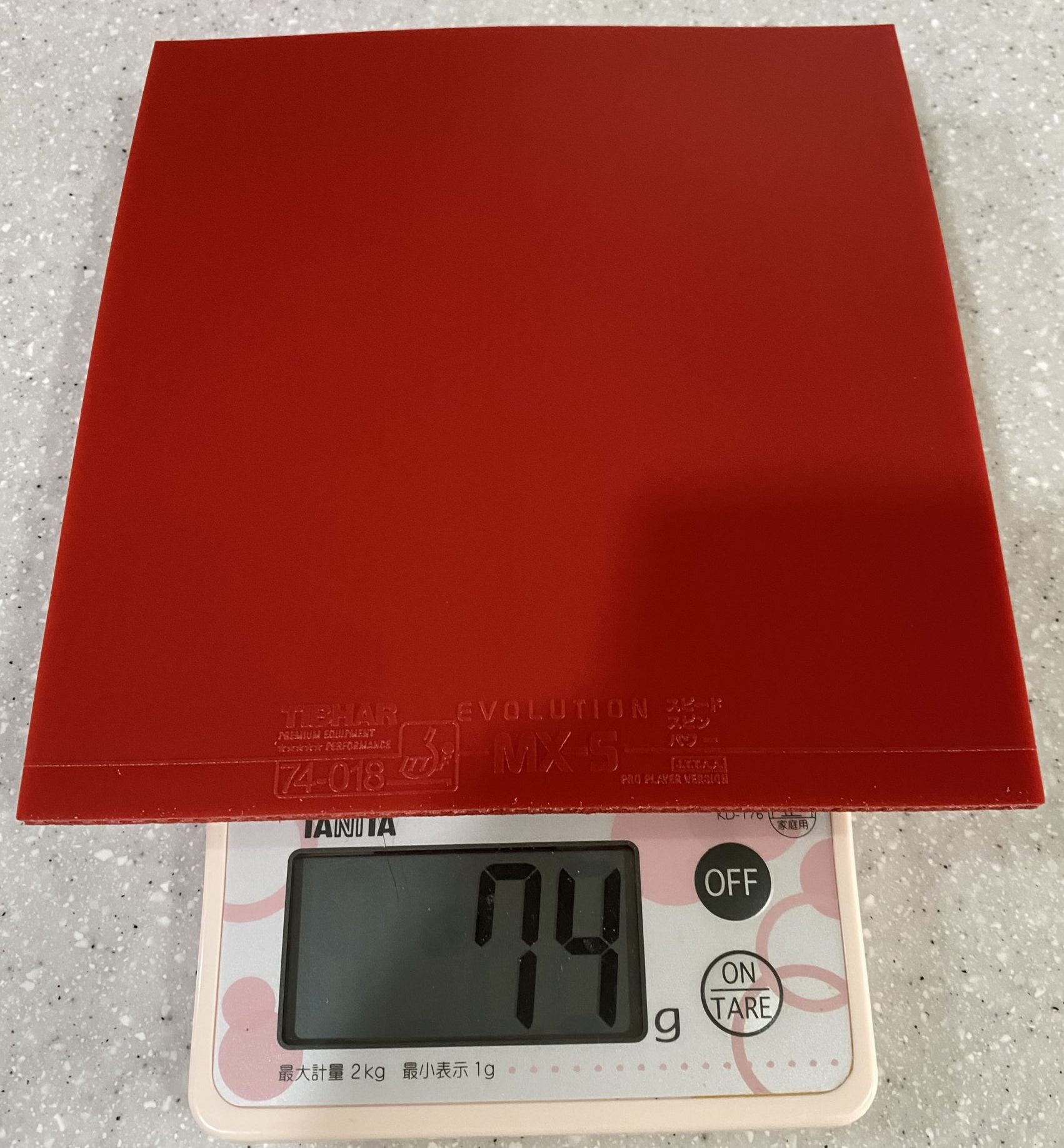 The weight of Hurricane NEO III Blue Sponge for Ministry Term(sponge was 2.15 mm with 40 stiffness) after cut (without post processing) was about 47 g. This weight was lighter than other Chinese-tacky rubbers. Some players prefer to use heavy tacky rubbers because their higher bounce. Anyway, this lighter weight (below 50 g) of Hurricane NEO III Blue Sponge for Ministry Term was one of characteristics.