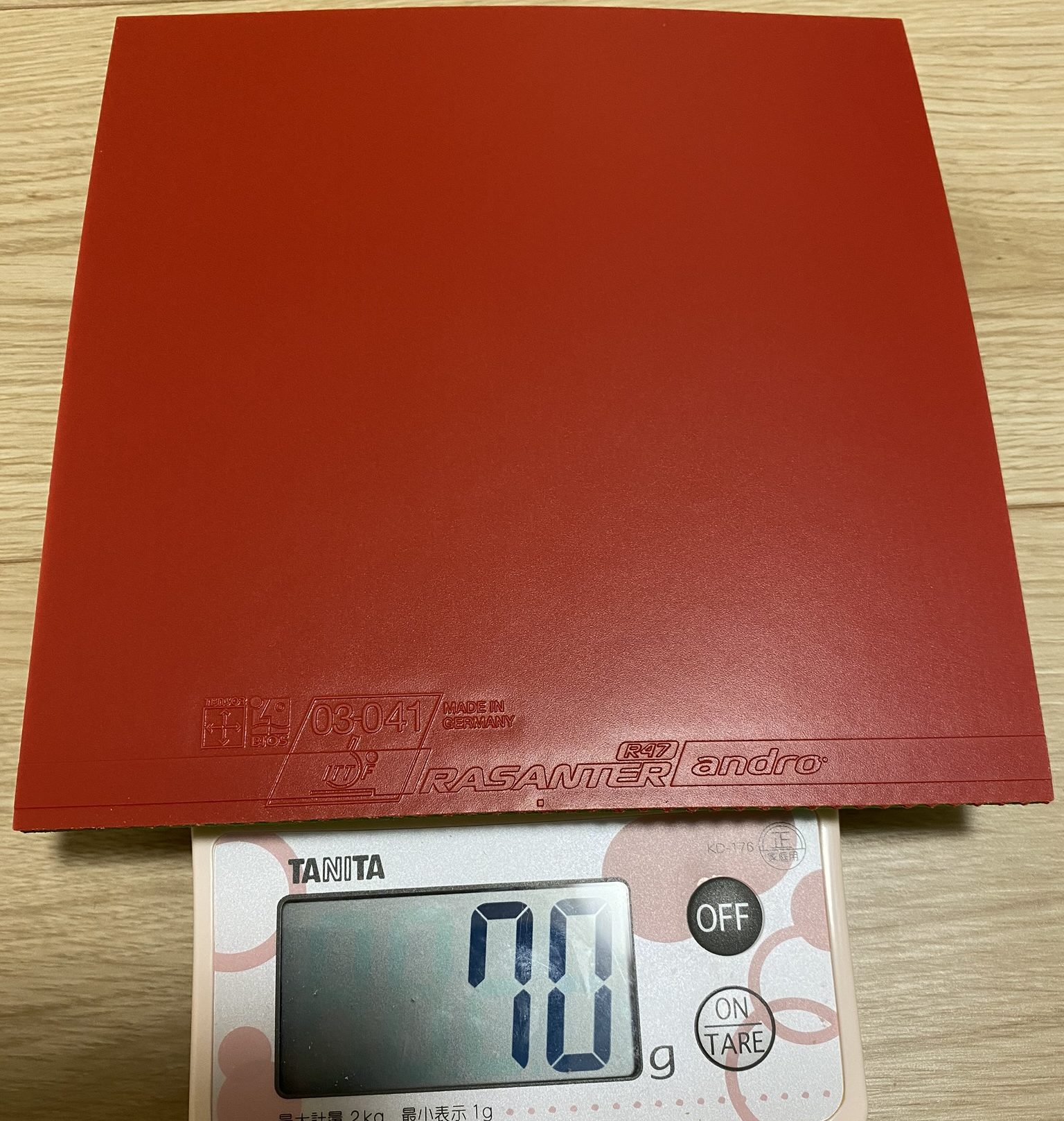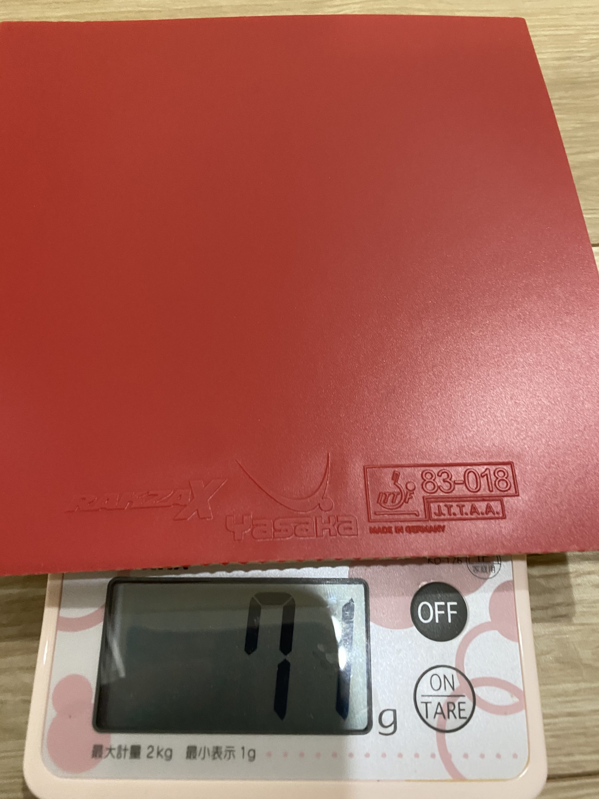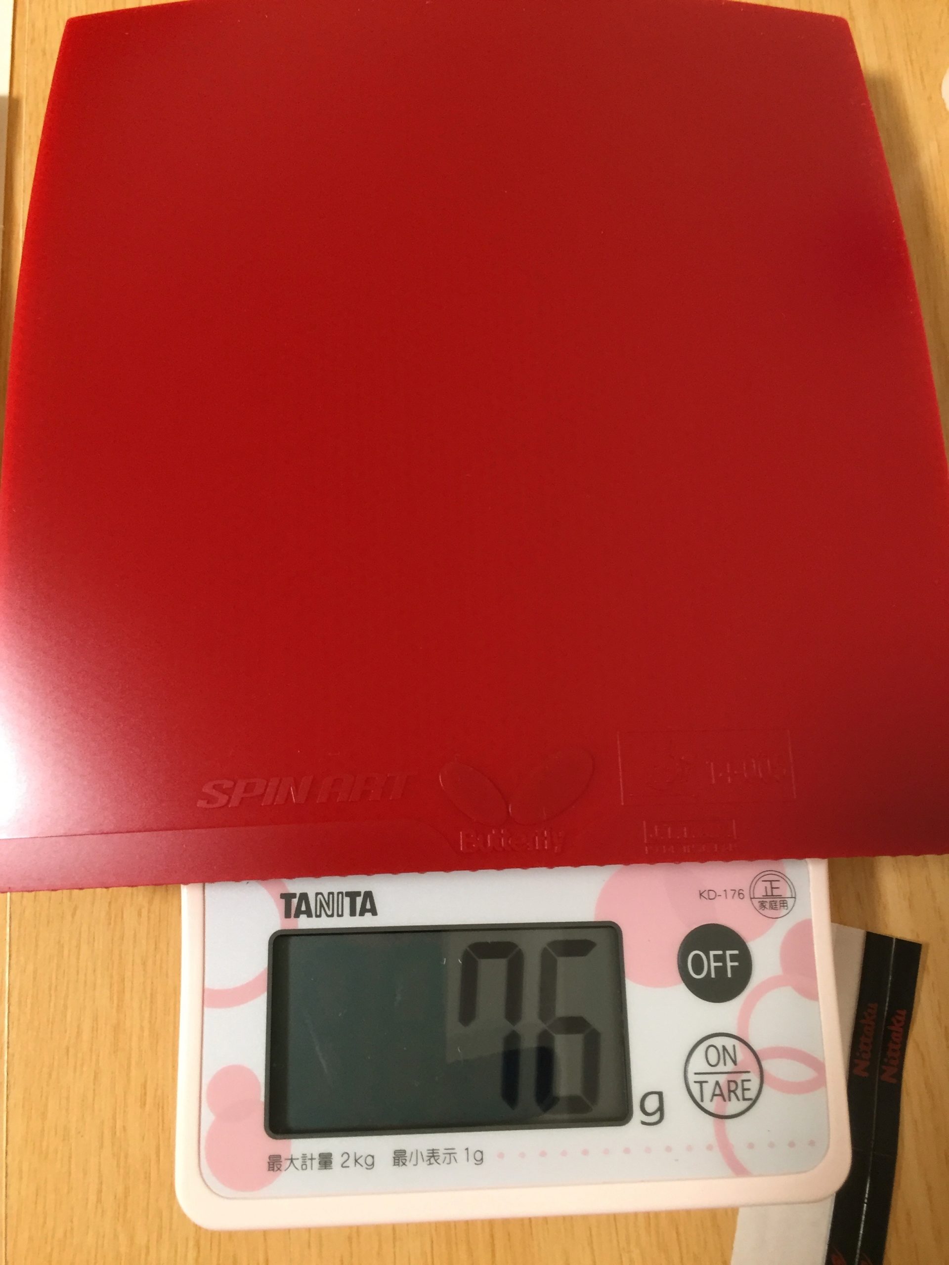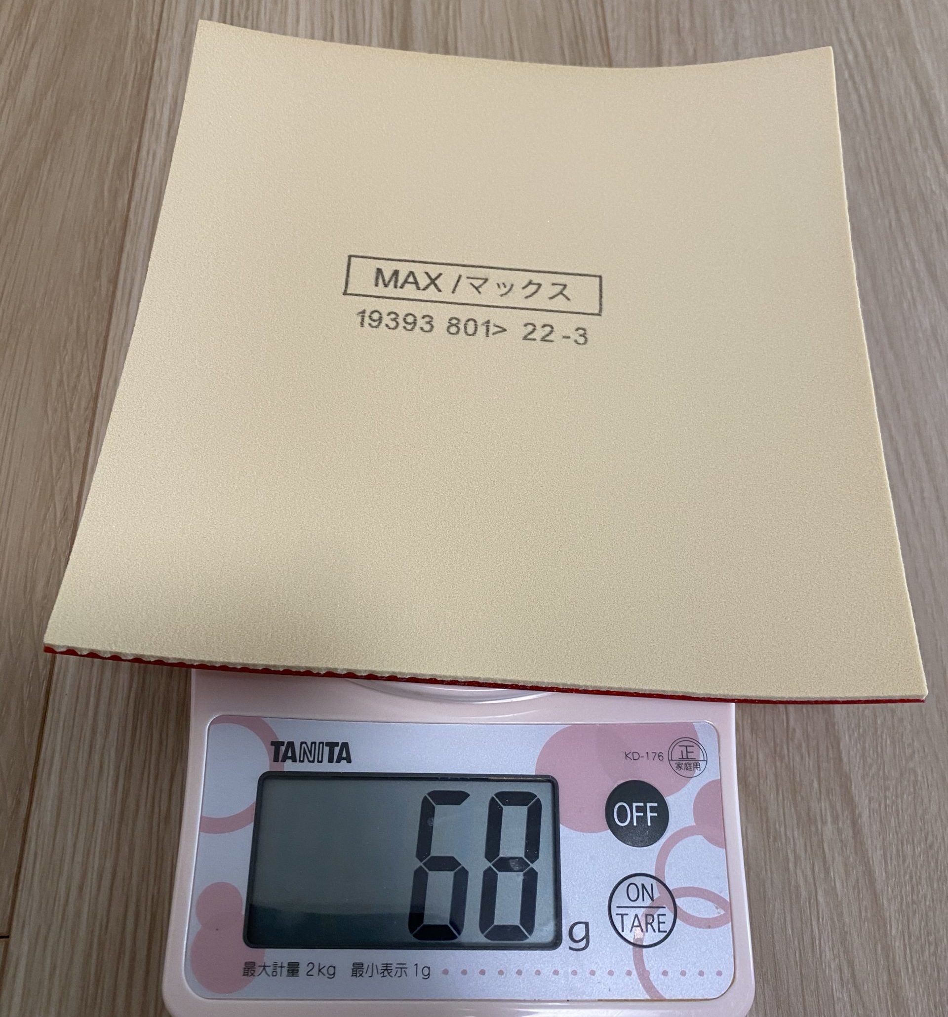 Weight of Dignics 09C (extra thick) was about 50 g. This weight was similar to Tenergy 05 Hard. One of characteristics of Butterfly’s rubbers is that overall rubbers shows high performance and light. Thus, Dignics 09C is heavy type rubber in the Butterfly.