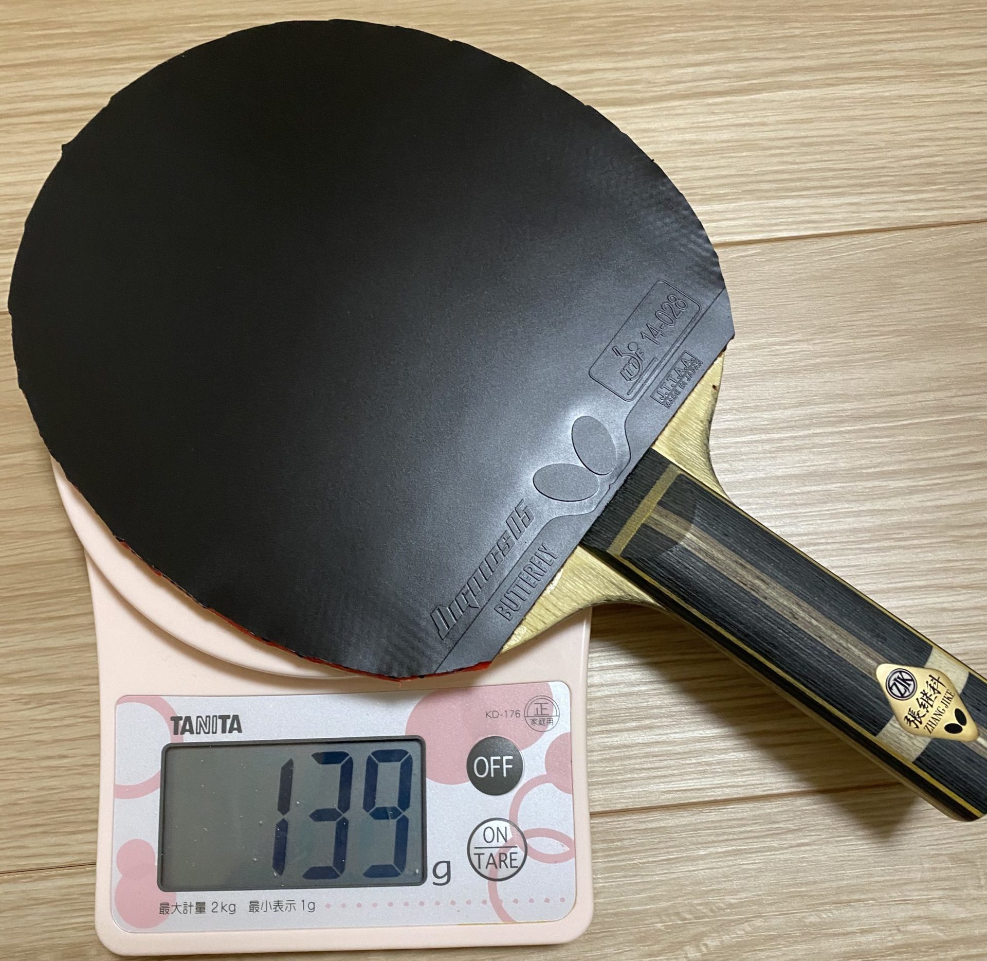 先ほども触れましたが、上板にコト材を用いているので上板硬めで、かつ張継科選手モデルだけでなく、バタフライの特殊素材ありラケットの中で最も薄いブレードをゆうするラケットが張継科ZLCになります。5.5 mm!大雑把な話ですが、板が薄ければ薄いほど、回転をかけやすく回転量のMax値も高くなると思ってます。デメリットとして、その分、飛距離が出にくかったりパワフルなボールが出にくくなります。この張継科ZLCにしてから回転量が増えたと感じていて、特に良いのがループドライブになります。エゲツない回転がかかっていると相手の方に言ってもらえることが増えましたね。