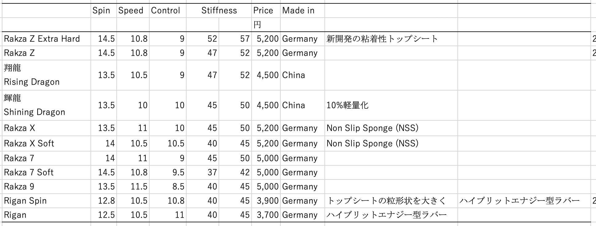 The sheet is a softer rubber, but since the sponge hardness is hard in the first place, I felt that it was not easily affected by the amount of rotation of the other party. Also, although the bite is good, the flight distance is not so easy to get out, so I felt that it was very easy to counter drive. I think this rubber is a good point. It may depend on my skill, but it is Rhyzen ZGR that I felt that the counter drive fits well with the same hardness. I felt that the Rhyzen ZGR was less sticky and could be hit with an image close to spin tension, but in both cases the counter drive was a fairly easy rubber. Personally, I felt that Rakza Z Extra Hard would be better for the fore, and Rhyzen ZGR would be better for the back. I think that the counter drive fits well if Shoryu can do the same, but the Shoryu I purchased is a fairly light individual and easy to use, but I got the impression that the rubber itself seems to be defeated by the hard plastic ball. rice field. I think the Rakza Z Extra Hard is more suitable for the current plastic ball.