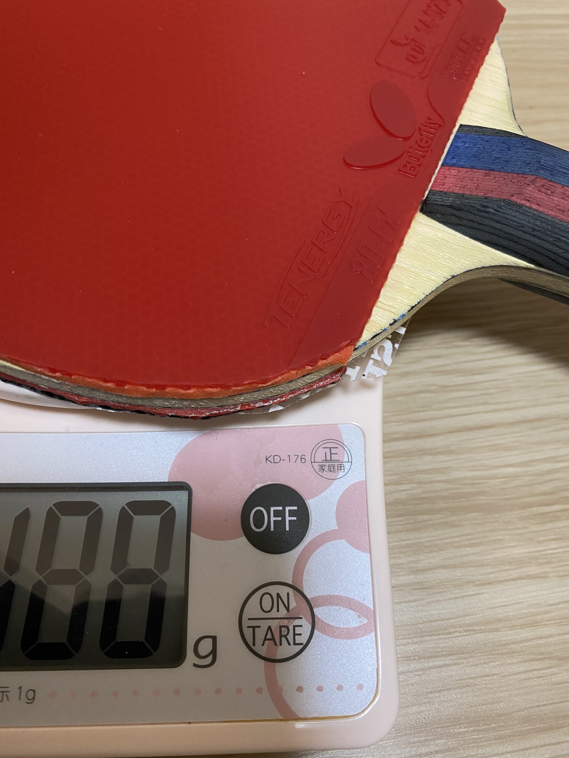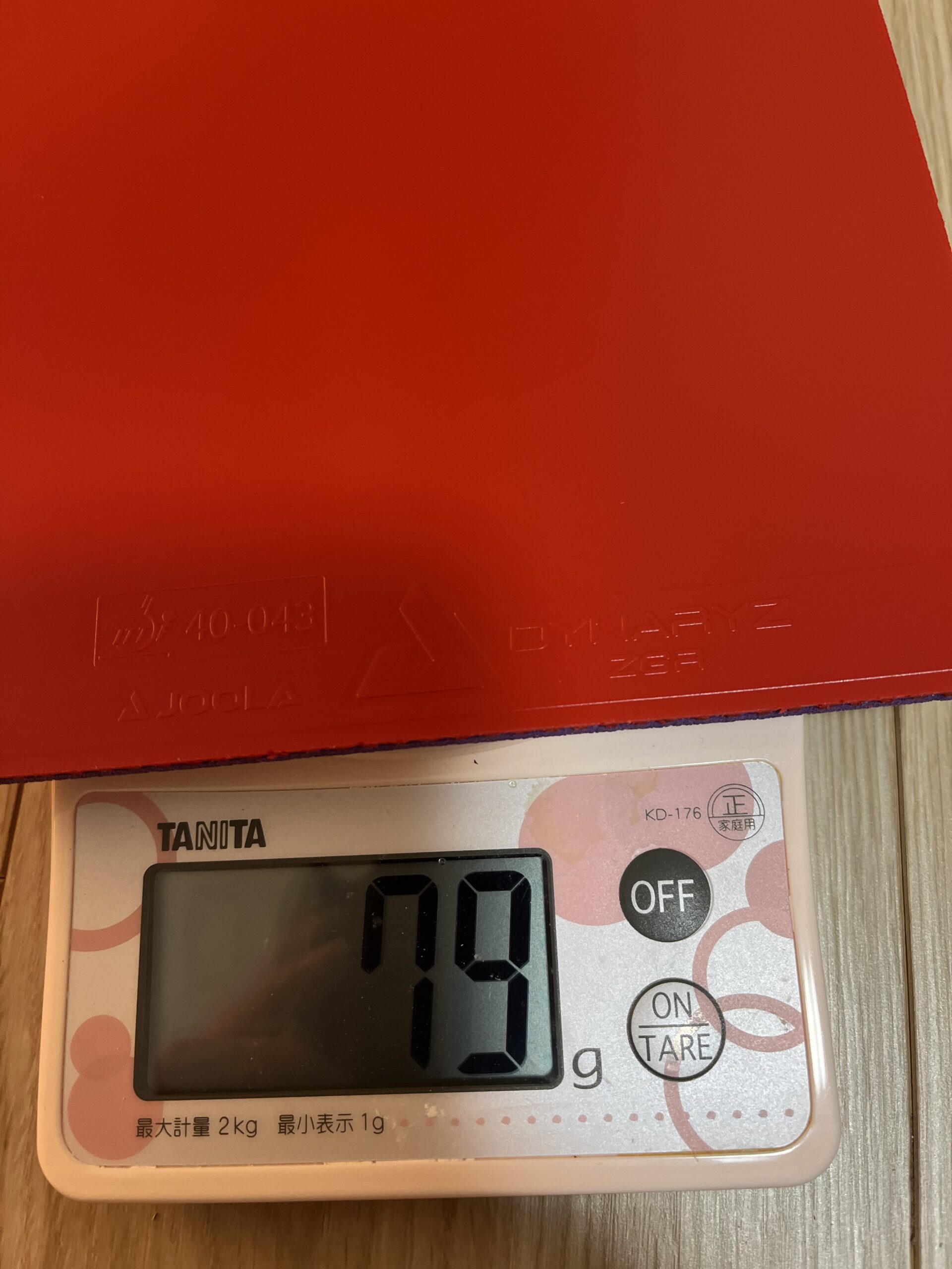 The rubber weight of the Tenergy 80FX was about 45 g. It’s a little lighter than Tenergy 05FX (46 g). Butterfly’s characteristic is that there are many high-performance and lightweight rubbers as a whole, and you can see that this time as well, it is light and of high quality.