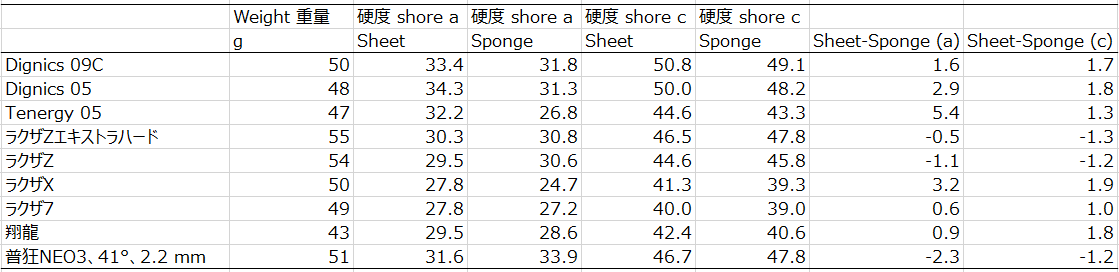 ディグニクス05 48 g shore cシート側: 50.0° shore cスポンジ側: 48.2°
