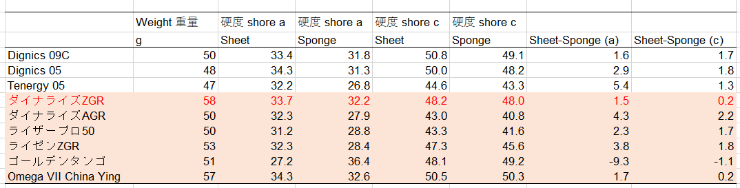 The Rakza Z Extra Hard is quite heavy, but the hardness is as hard as Tenergy 05 (from the result of the shore c sheet). However, YASAKA’s rubber does not have a good hardness, so it is Rakza Z Extra Hard that feels as hard as Dignics 09C. Also, the characteristic is the difference between the seat side and the sponge side of shore a. In short, you can see that the seat side is softer and the sponge side is harder is Rakza Z. It seems that the theory is that the seat side of rubber called Dignics 09C and spin type tension rubber is hard and the sponge side is soft, but the sponge is hard and the sheet is soft for Rakza Z and Chinese leopard. It may be a feature. The soft seat gives the impression that the quality of the loop drive is easy to improve, so you can expect the goodness of the loop drive from the Rakza Z Extra Hard!