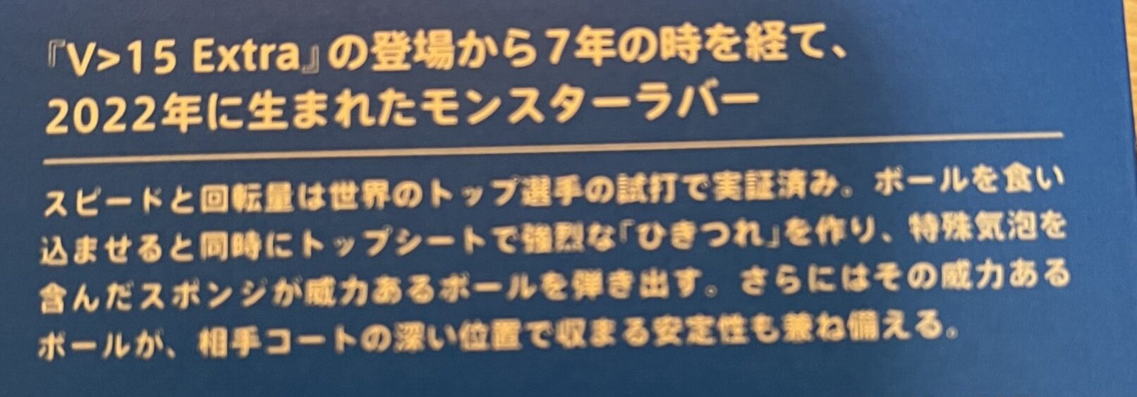 全体的な方向性は、V>15 Extra (V>15エキストラ)に見られた扱いにくさは、ほとんど感じませんでしたね。またディグニクス系のラバーと比べると弧線がやや低いので、その分思い切り回転をかけにいっても、しっかりおさまる安心感もありました。スピード系のラバーなのに、です!もちろん、球離れのギリギリ感じられる設計になっていて、人によっては球を持てないと感じるかもしれません。要はスピン系テンションラバーのように使える回転のかけやすさ、扱いやすさがしっかりあると感じられました。この感じは試打しないとわからないので、いい意味で意外でした。回転量もかなりかけられると感じ、上手に使えばテナジー系以上の回転量が得られると思います。