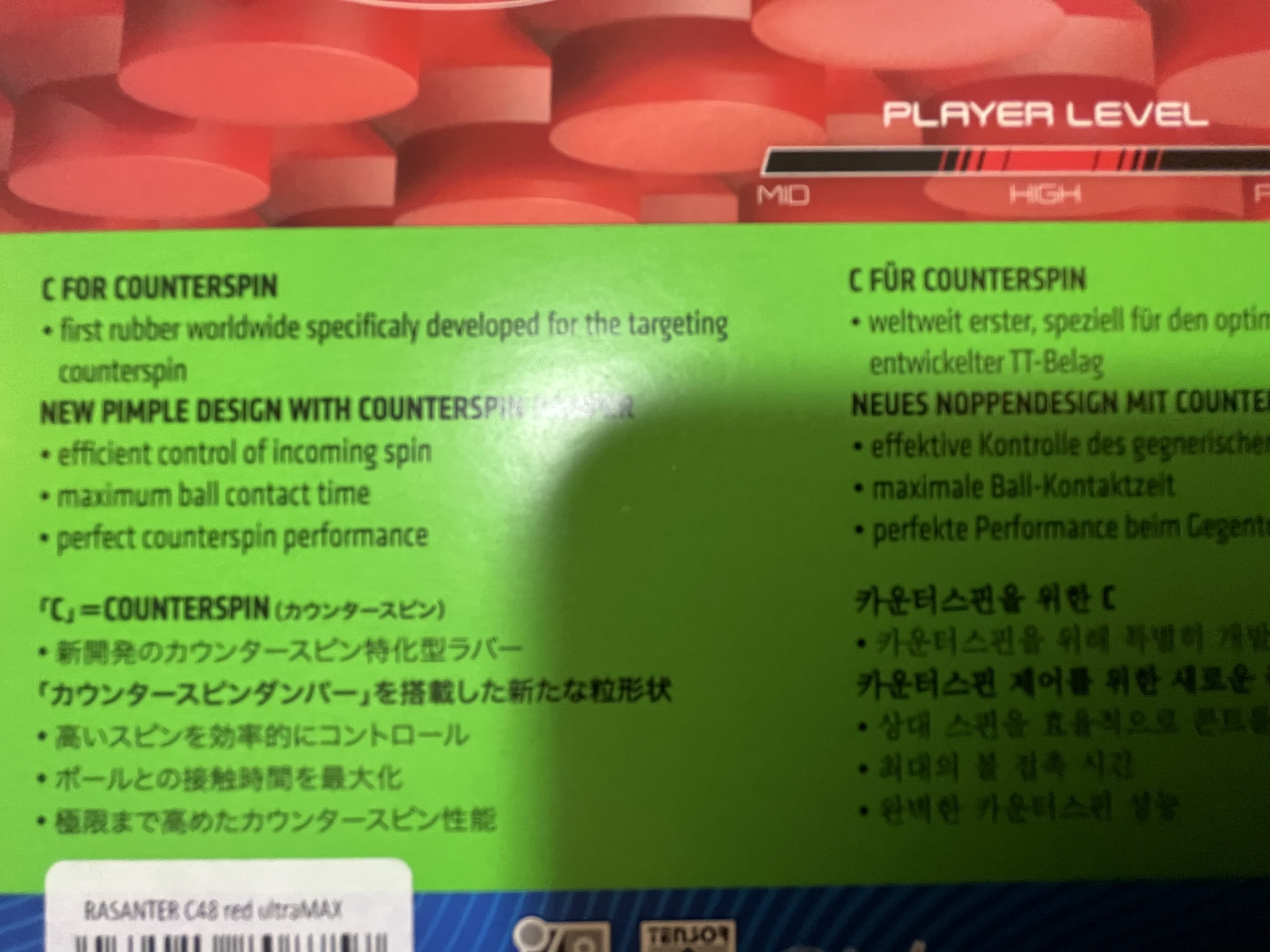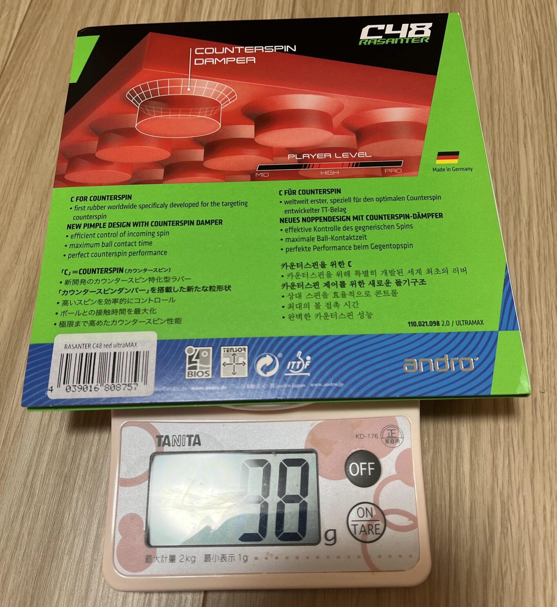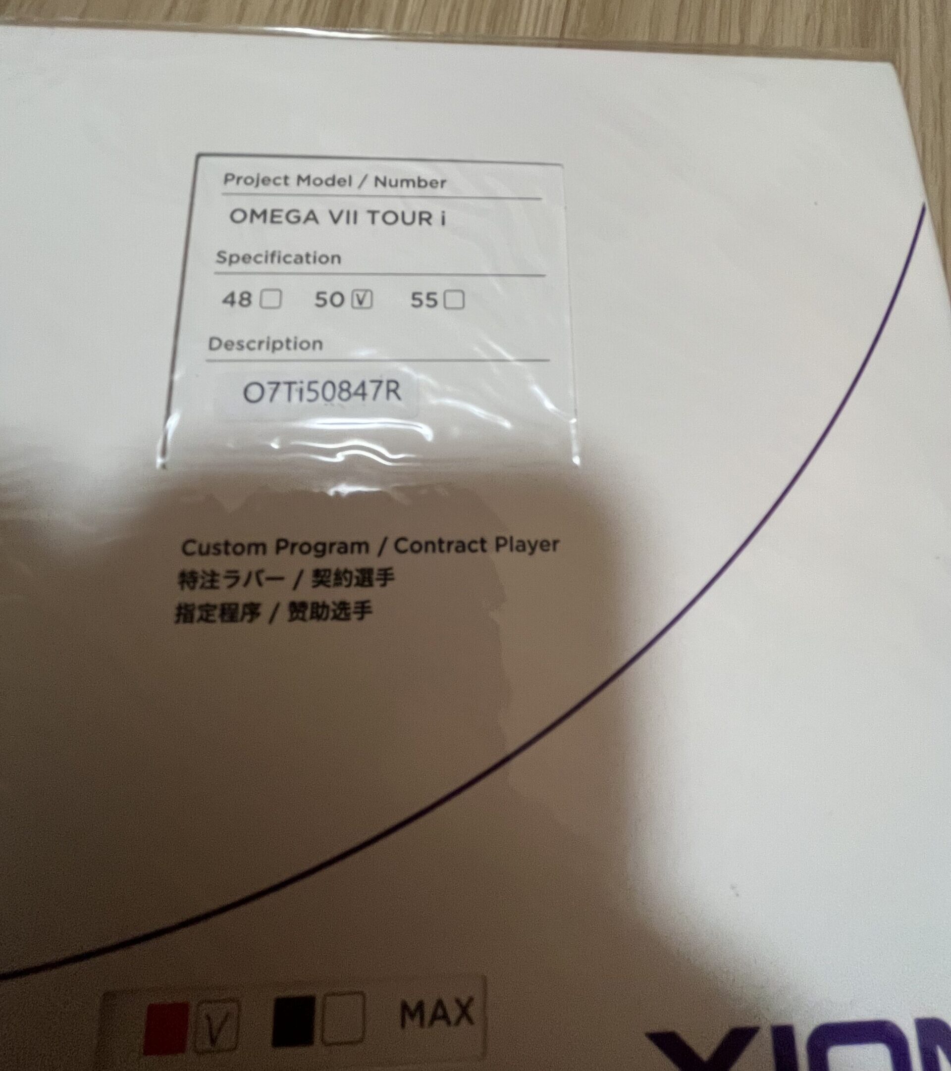 エクシオンさんの説明は誇張表現が凄いですね。でもこれを読むとラバーを使うときにとても楽しみになると思います。説明は、Omega VII Tour i 48 (オメガVIIツアーi48)と同じもので共通になっています。まープロ仕様を強調してますね。原産国はドイツですので、他のOmegaやVegaのラバー同様に、基本的には同じ工場で製造されているということのようです。