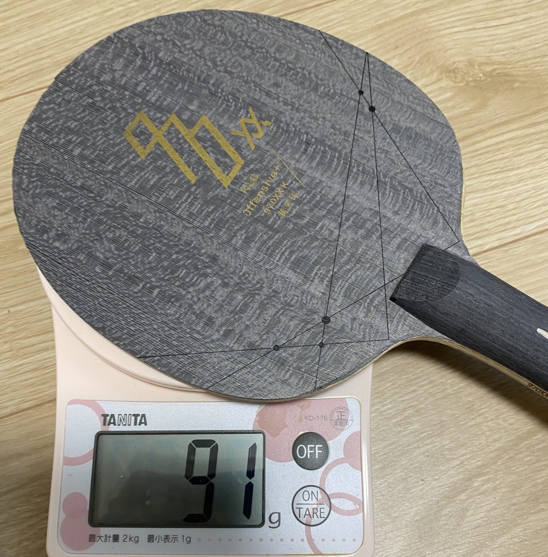 詳細な情報はないのですが、この970XX-KLCはDouble Happiness Shanghai(DHS)のHurricane 301(キョウヒョウ301)というラケットをスリムダウンしたようなラケットのように感じました。キョウヒョウ301は、馬龍選手のラケットHurricane Long V(キョウヒョウ龍V)の廉価バージョンのようなラケットで、やや重たくて扱いにくいラケットです。一方、970XX-KLCはキョウヒョウ301と似ていますが、ややブレード面積を狭くし、かつブレード厚さも薄くすることで、扱いやすさを上げたようなラケットだと感じました。ちなみに、キョウヒョウ301について、もう少し補足すると、Hurricane Long V(キョウヒョウ龍V)にかなり似ていて、インナーKLC(?)系ラケットになります。ただし、重量が90 gオーバーでかなり重量級の7枚合板のようなラケットになります。