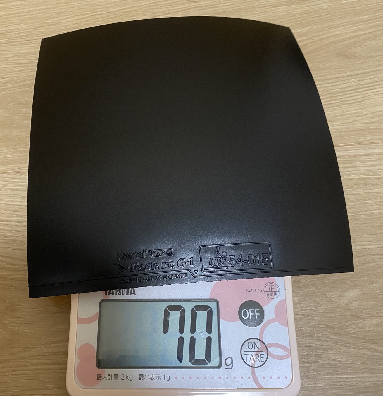 Fastarc G-1(ファスタークG−1) Tension Spin Sheet(テンションスピンシート) Strong Sponge(ストロングスポンジ) ・Speed:15.00 ・Spin:12.50 ・Sponge Thickness: 中(1.7 mm)、厚(1.9 mm)、特厚(2.1mm) ・Sponge硬度:37.5(ドイツ基準47.5) ・6,000円 + 税 ・70 g(切断前) → 48 g(張継科ZLCに貼って)