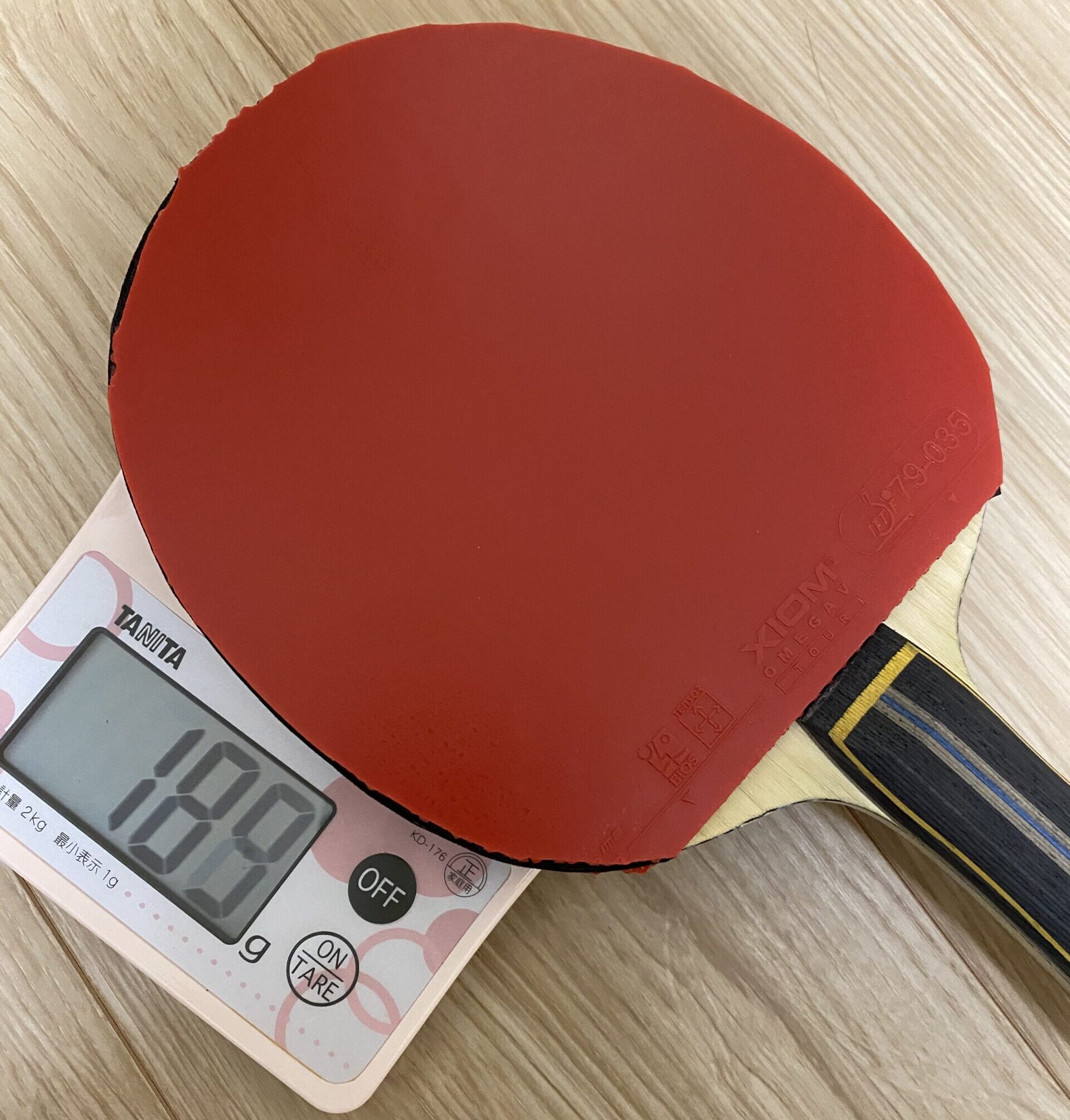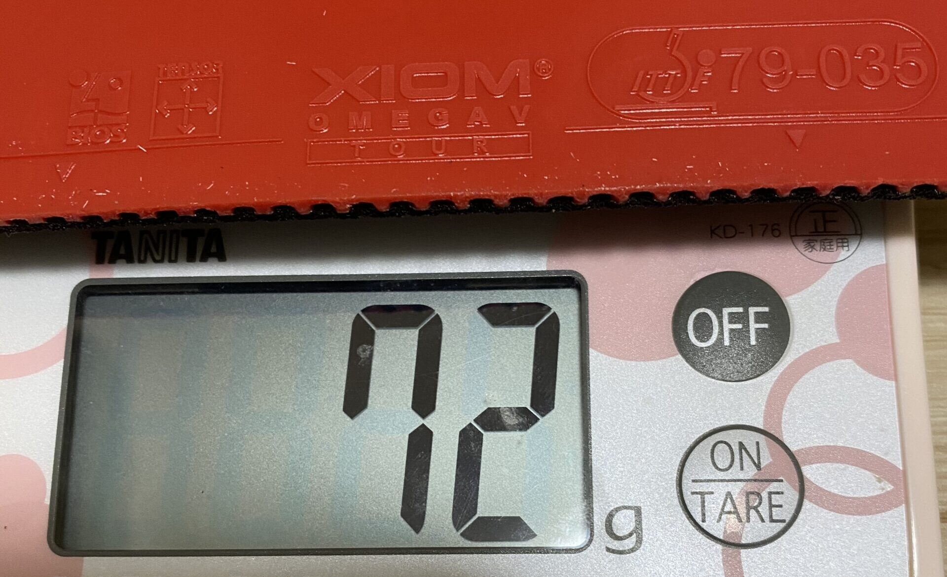 重量は案の定の50 gオーバーでしたが、オメガ5ツアーDFは打感が軽かったですね。あらためてXIOMさんのオメガ7シリーズはヘビーで粘着ラバーのようなマッドな打球感が特徴のように感じます。一方で、同じELASTO FUTURA採用ではあるものの、Vega Tour(ヴェガツアー)、Vega X(ヴェガX)はそこまでマッドではなく、癖のないラバーの印象です。そして、今回のオメガ5ツアーDFも、軽やかでライトな打感で驚きました。粘着ラバーのようなマッドさとボールの重さ、そしてスピードはオメガ7シリーズの特徴のようですね。一方でヴェガツアーやヴェガXそして、オメガ5シリーズは、多少重いようですが、Tenergy(テナジー)などのラバーと同じように、ミートもドライブも軽快さのあるラバーだと感じました。フォアにもバックにも使えるようなラバーだと思いますね。